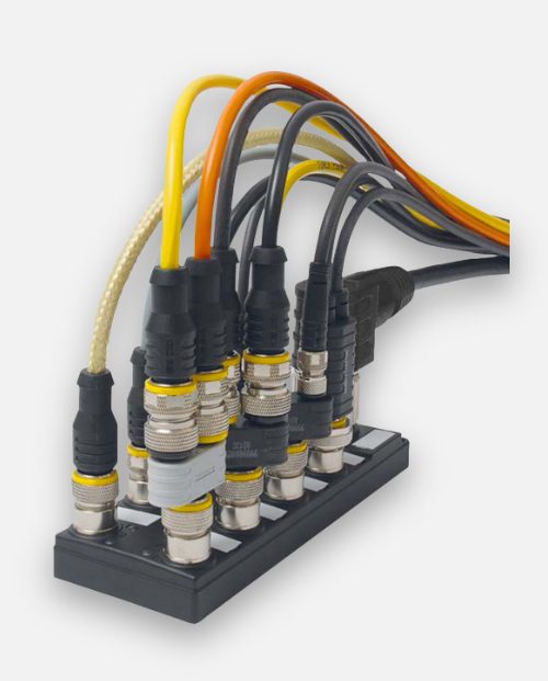 Conectores para electroválvulas, conectores de dos vías, cajas de distribución para descentralización de cableado y conectores cableables completan la extensa gama de productos estándar de TURCK.