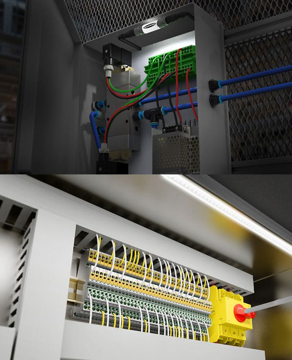 Iluminación de interiores de armario eléctrico y cuadros de mando para intervención y verificación.